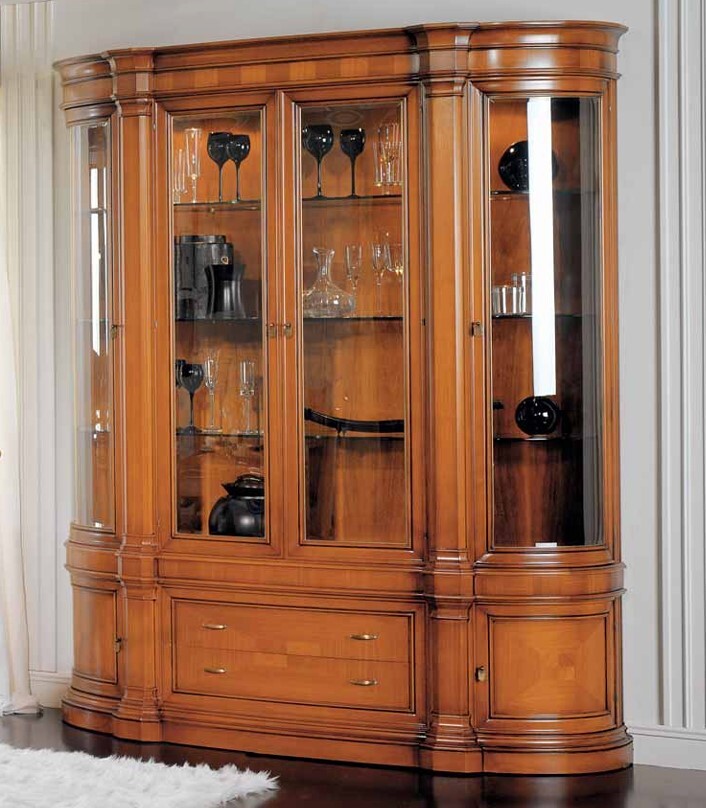 Comedor fabricado en madera de cerezo con marquetería de naranjo con unas líneas clásicas para toda la vida.