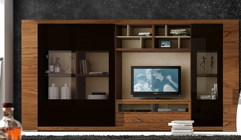 COMPOSICION EXTERIOR NOGAL,PUERTA CORREDERA CRISTAL NEGRO Y TRASERA ARENA